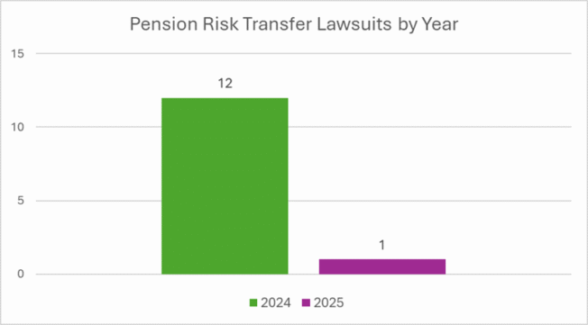 Since the beginning of 2014, 13 class lawsuits have been filed against employers who had previously transferred assets and liabilities from their pension plans to purchase a group annuity contract from an insurance company, through a pension risk transfer (PRT) transaction. Plaintiff firms alleged this offloading of pension obligations to private insurance companies violated ERISA by not selecting the “safest available annuity” for retirees. Of the 13 PRT lawsuits filed to-date, 11 targeted insurer Athene and two targeted insurer Prudential. The main development in this space has been the split court rulings: